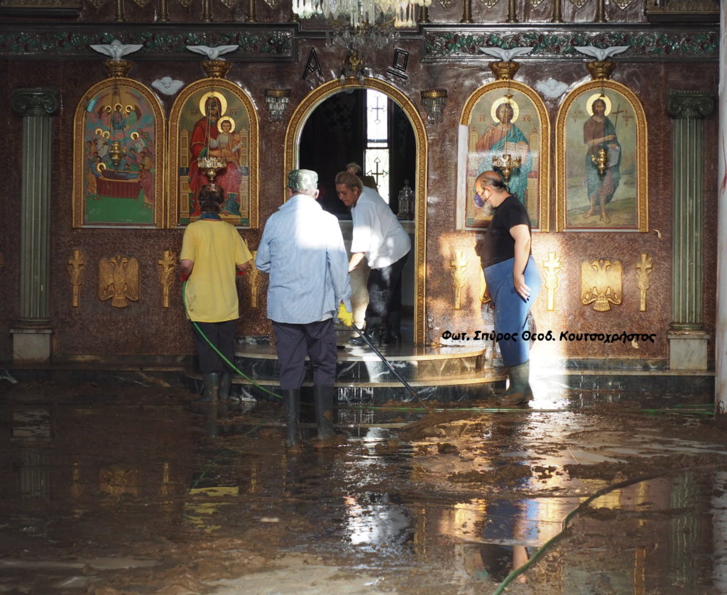 Οι κάτοικοι αφήνουν «τα δικά τους» και τρέχουν να καθαρίσουν τις εκκλησίες από τα λασπόνερα, για να μπορέσουν να τελέσουν την πρώτη Θεία Λειτουργία… μετά την Κυριακή 3 Σεπτεμβρίου 2023.