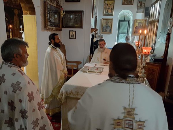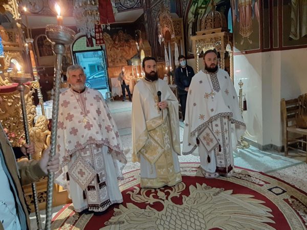 Εν συνεχεία, ακολούθησε δέησις και η ιερά κατανυκτική αγρυπνία προεξάρχοντος του Πρωτοσυγκέλλου Πανοσ Αρχιμ Νικοδήμου Πόγκα και των συλλειτουργούντων ιερέων: Οικονόμου Αριστείδου Ρούσσου εφημερίου ενοριας Διρευμάτων Πρεσβυτέρου Αναργύρου Τσιπόκα εφημερίου ενορίας Πετριών και του Πρωτοπρ Ευαγγέλου Βογιατζή εφημερίου του ιερού ναού και των συμμετεχόντων πιστών που προσήλθαν ιστάμενοι με την τήρηση των υγειονομικών διατάξεων με τάξη ώστε να προσκυνήσουν τα ιερά λείψανα και να λάβουν την χάρη του Αγίου μεταξύ εκ του οποίου του Αντιδημάρχου κ. Ιωάννου Πιλάτη.