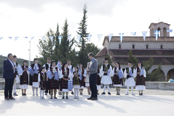 Είχε πει τότε, ότι “η Ελληνική Εθνική Μειονότητα πρέπει να είναι μία γέφυρα φιλίας και συνεργασίας μεταξύ των δύο μας λαών”. Όσο ίσχυε τότε, άλλο τόσο ισχύει και τώρα. Και θέλω να ξέρετε ότι στο πρόσωπό μου, ως Πρωθυπουργού της Ελλάδος, θα έχετε πάντα έναν άνθρωπο ο οποίος θα σκύψει πάνω στα προβλήματα της Μειονότητας και θα αγωνιστεί για να βελτιώσει το βιοτικό σας επίπεδο αλλά κυρίως για να επιτρέψει σε αυτά τα νέα παιδιά να ζουν, να ελπίζουν ότι μπορούν να προκόψουν στον τόπο τους. Θέλουμε να μείνουν εδώ και να κρατήσουν άσβεστη στη φλόγα του Ελληνισμού. Σε εσάς χρωστάμε ένα μεγάλο ευχαριστώ. Η Ελλάδα σας χρωστάει ένα μεγάλο ευχαριστώ. Και θέλω να ξέρετε ότι εδώ, σε αυτή την όμορφη γωνιά στην οποία κατοικείτε εδώ και αιώνες, η καρδιά του Ελληνισμού χτυπάει πάντα λίγο πιο δυνατά. Και το γαλάζιο της σημαίας είναι πάντα λίγο πιο γαλάζιο», σημείωσε ο Πρωθυπουργός, κατά τον χαιρετισμό που απηύθυνε από το Πολιτιστικό Κέντρο Λιβαδειάς, παρουσία πολιτών και μαθητών του Ενιαίου Λυκείου «Λευτέρης Τάλλιος».