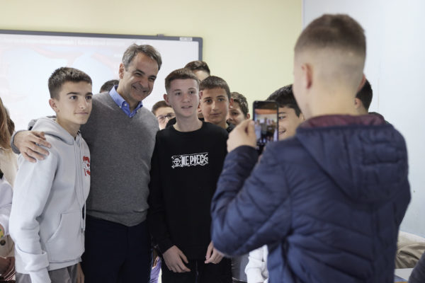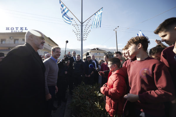 Ο Κυριάκος Μητσοτάκης και ο Έντι Ράμα, επισκέφθηκαν το Ενιαίο Μεσαίο Σχολείο Δερβιτσάνης, όπου ξεναγήθηκαν στις εγκαταστάσεις και είχαν την ευκαιρία να συνομιλήσουν με παιδιά και να ακούσουν τα χριστουγεννιάτικα κάλαντα.