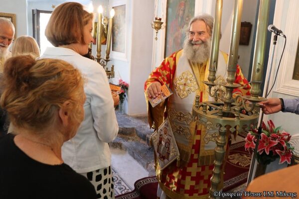 Μετά το πέρας της Θ. Λειτουργίας, ο Σεβ. διένειμε στους πιστούς από ένα Εγκόλπιο της Θ. Μεταλήψεως σε μετάφραση του θεολόγου Μ. Δομουχτσή, έκδοση Αδελφότητος Θεολόγων «ο Σωτήρ». Ακολούθησε ενδιαφέρουσα επίσκεψη του Σεβ. στην αρχαία αυτή κωμόπολη.