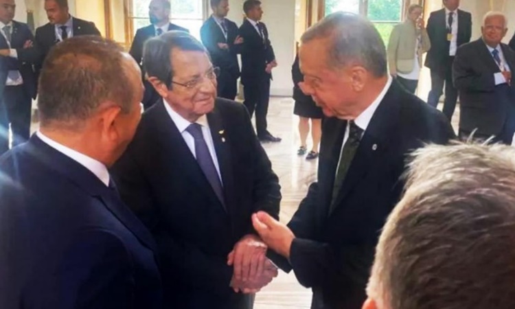 Κληθείς να αναφέρει το περιεχόμενο της σύντομης συνομιλίας του με τον κ. Ερντογάν στο περιθώριο της Συνάντησης της Ευρωπαϊκής Πολιτικής Κοινότητας, στην Πράγα, ο Πρόεδρος είπε ότι “από αβρότητα, καθόταν με άλλους Ευρωπαίους εταίρους, φίλους, χαιρέτησα τους υπόλοιπους, δεν ήταν δυνατόν να μη χαιρετήσω τον ίδιο. Μέσα στα πλαίσια του πολιτισμού αλληλοχαιρετιστήκαμε, κάναμε μια χειραψία. Θεώρησα ότι καλό ήταν να υπομνήσω την ανάγκη να γίνει επιτέλους ένας ουσιαστικός διάλογος, ότι έφτασε ο καιρός, αντί των απειλών, αντί της δημιουργίας τετελεσμένων, να δημιουργηθούν οι προοπτικές λύσης του Κυπριακού που θα ανοίξουν τον δρόμο και για την Τουρκία όσον αφορά, αν έχει, ευρωπαϊκούς προσανατολισμούς”.