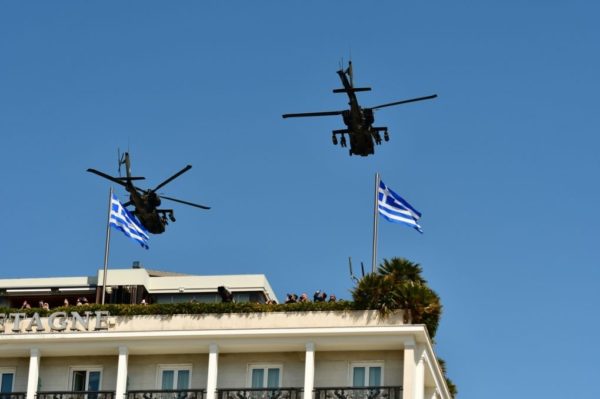 Στη συνέχεια παρακολούθησε την στρατιωτική παρέλαση στην παρουσία της Α.Ε. Προέδρου της Ελληνικής Δημοκρατίας, του υπουργού Εθνικής Άμυνας, κ. Νικόλαου Παναγιωτόπουλου, του υπουργού Άμυνας της Κυπριακής Δημοκρατίας, κ. Χαράλαμπου Πετρίδη, της υπουργού Άμυνας της Γαλλίας, κ. Florence Parly, του Αρχηγού ΓΕΕΘΑ, Στρατηγού Κωνσταντίνου Φλώρου και εκπροσώπων λοιπών πολιτειακών, πολιτικών και στρατιωτικών αρχών.