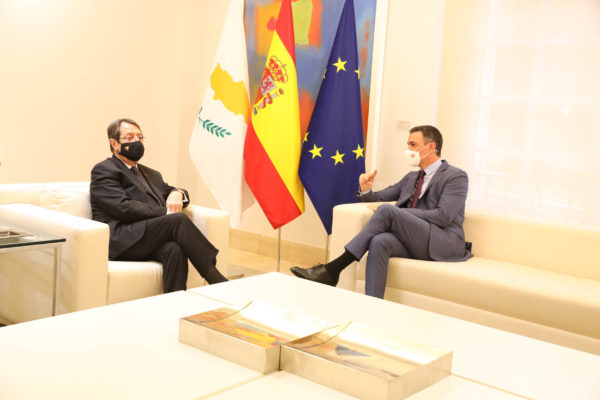 Κατά τη συνάντηση των δύο ηγετών στο Μέγαρο της Μονκλόα, στο πλαίσιο της επίσκεψης του κ. Αναστασιάδη στη Μαδρίτη κατόπιν πρόσκλησης του Βασιλιά Φίλιππου ΣΤ’, συζητήθηκαν οι παγκόσμιες προκλήσεις και τα σημαντικά θέματα της ευρωπαϊκής ατζέντας. Επιπλέον, ο κ. Σάντσεθ και ο κ. Αναστασιάδης αντάλλαξαν απόψεις για την πανδημία του COVID-19 και τόνισαν τη σημασία της ανταλλαγής γνώσεων, τεχνογνωσίας, βέλτιστων πρακτικών και τεχνολογίας. Επιβεβαίωσαν τη δέσμευσή τους στο ταμείο ανάκαμψης και ανθεκτικότητας της ΕΕ προς τόνωση των οικονομιών των δύο χωρών τους και ανάκαμψη από τις επιπτώσεις του COVID-19.