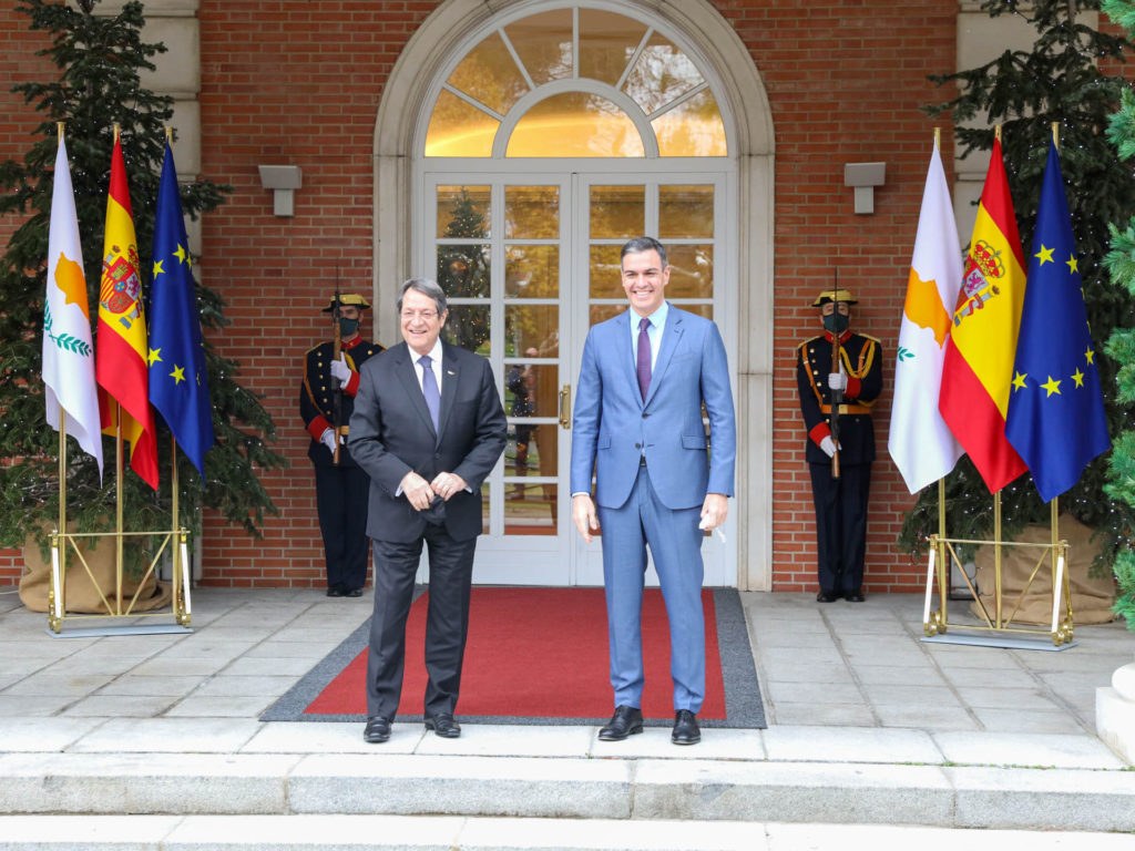 Κατά τη συνάντηση των δύο ηγετών στο Μέγαρο της Μονκλόα, στο πλαίσιο της επίσκεψης του κ. Αναστασιάδη στη Μαδρίτη κατόπιν πρόσκλησης του Βασιλιά Φίλιππου ΣΤ’, συζητήθηκαν οι παγκόσμιες προκλήσεις και τα σημαντικά θέματα της ευρωπαϊκής ατζέντας. Επιπλέον, ο κ. Σάντσεθ και ο κ. Αναστασιάδης αντάλλαξαν απόψεις για την πανδημία του COVID-19 και τόνισαν τη σημασία της ανταλλαγής γνώσεων, τεχνογνωσίας, βέλτιστων πρακτικών και τεχνολογίας. Επιβεβαίωσαν τη δέσμευσή τους στο ταμείο ανάκαμψης και ανθεκτικότητας της ΕΕ προς τόνωση των οικονομιών των δύο χωρών τους και ανάκαμψη από τις επιπτώσεις του COVID-19.