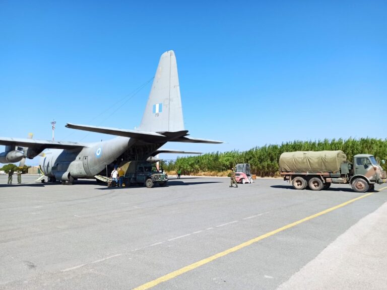 Απογειώθηκε σήμερα λίγο μετά τις 09:00 από την 112 ΠΜ με προορισμό το αιγυπτιακό αεροδρόμιο El Arish, στη χερσόνησο του Σινά, αεροσκάφος C-130 με φορτίο ανθρωπιστικής βοήθειας προοριζόμενο για τους άμαχους της Λωρίδας της Γάζας.