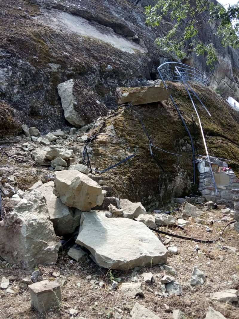 Στα μέσα περίπου του περασμένου Ιουλίου στο όμορφο εκκλησάκι της Παλαιοπαναγιάς, το οποίο είναι λαξευμένο μέσα στο βράχο, προέκυψε μια δυσκολία όταν ένας τεράστιος βράχος αποκολλήθηκε και έπεσε στην σκάλα που οδηγεί στο εσωτερικό του. Με την πτώση του ο βράχος είχε καταστρέψει μέρος του κιγκλιδώματος της σκάλας αλλά και κάποια σκαλοπάτια. Μεγάλα κομμάτια βράχου είχαν φράξει την είσοδο και η πρόσβαση σ΄ αυτό ήταν αδύνατη. Στη βάση της σκάλας υπάρχει κι ένα εικονοστάσι μέρος του οποίου ο βράχος είχε καταστρέψει χωρίς ωστόσο να πειράξει τις εικόνες της Παναγίας που βρίσκονταν εκεί.