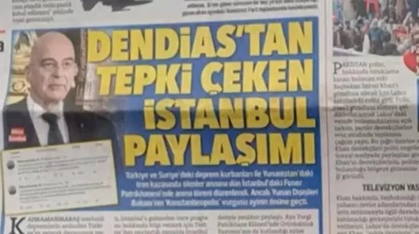Και συνεχίζει: «Ο Έλληνας Υπουργός Εξωτερικών Νίκος Δένδιας, ο οποίος ήρθε στην Τουρκία μετά τους σεισμούς στο Καχραμανμαράς και έστειλε μηνύματα αλληλεγγύης, ήρθε αυτή τη φορά στην “Istanbul” για τη Λειτουργία. Οι αναρτήσεις στα μέσα κοινωνικής δικτύωσης του κ. Δένδια, ο οποίος παρέστη στη Λειτουργία που τελέστηκε στο Ελληνικό Πατριαρχείο στο Φανάρι για όσους έχασαν την ζωή τους στους σεισμούς στην Τουρκία και στη Συρία και στο σιδηροδρομικό δυστύχημα στα Τέμπη στην Ελλάδα, προκάλεσαν αντιδράσεις. Στο μήνυμα που ανήρτησε στο Twitter σχετικά με τις πληροφορίες για το πρόγραμμά του πριν φτάσει στην “Istanbul”, χρησιμοποίησε τις λέξεις “Κωνσταντινούπολη” αντί για “Istanbul” και “Οικουμενικός” αντί για “Μητροπολίτης”».