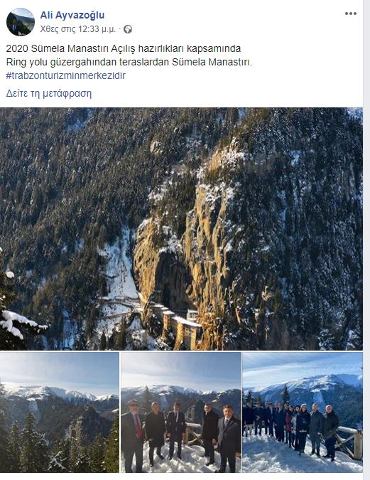 Στην περιοχή βρέθηκε χθες ο επικεφαλής της διεύθυνσης Πολιτισμού και Τουρισμού της Τραπεζούντας Αλί Αϊβάζογλου, και μάλιστα ανέβασε σχετική ανάρτηση στο Facebook.