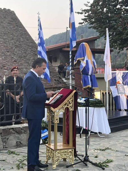 “Η προτομή του θα συμβολίζει την αιώνια εκτίμηση του Κυπριακού Ελληνισμού στο πρόσωπό του και θα αποτελεί ταυτόχρονα παντοτινό μάρτυρα των ηρωικών πράξεών του, κατά τον εθνικοαπελευθερωτικό αγώνα του 1955 – 1959”, τόνισε σε άλλο της ομιλίας του ο Υπουργός Άμυνας.