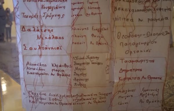Από σήμερα, ένα έργο καμωμένο από τα χέρια των γυναικών της Θράκης κοσμεί το Προεδρικό Μέγαρο της Ελληνικής Δημοκρατίας, ένα έργο που με μέσα ταπεινά – ένα βαμβακερό πανί, μαύρη και κόκκινη κλωστή – ζωντανεύει τη μνήμη των τόπων και των ανθρώπων που έζησαν και δημιούργησαν εκεί και την διαφυλάσσει για πάντα, παρακαταθήκη για τις επόμενες γενιές. Ευγενική δωρεά της διευθύντριας του Εθνολογικού Μουσείου Θράκης Ethnological Museum of Thrace κυρίας Αγγελικής Γιαννακίδου η οποία και το εμπνεύστηκε, φτιαγμένο από 200 πανάκια με κεντημένα ονόματα προγόνων και τοπωνύμια της βόρειας και ανατολικής Θράκης, είναι μια έμπρακτη εναντίωση στη λήθη, μια χειρονομία αντίστασης στο δρεπανηφόρο άρμα του χρόνου που θερίζει ανθρώπους και έργα.