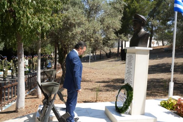“Αυτού που με το λαμπάδιασμά του σηματοδότησε την πορεία προς την ελευθερία της πατρίδας μας και με την ανυπέρβλητη ηρωική θυσία του ενσάρκωσε τη φιλοτιμία, την αγωνιστικότητα, την υπερηφάνεια και τον ανόθευτο πατριωτισμό των Κυπρίων, αλλά και ολόκληρου του Ελληνικού Έθνους”, πρόσθεσε.