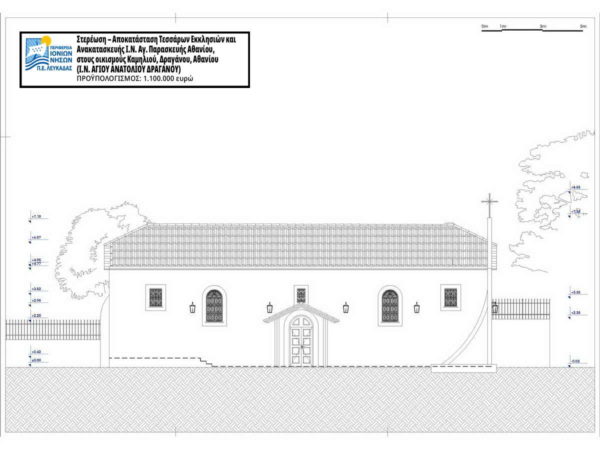 Ολοκληρώθηκαν οι σχετικές μελέτες από τον Ανάδοχο της Περιφερειακής Ενότητας Λευκάδας και πλέον και οι 5 σεισμόπληκτες εκκλησίες της Νοτιοδυτικής Λευκάδας είναι πλήρως ώριμες για το επόμενο στάδιο της δημοπράτησης των κατασκευαστικών/επισκευαστικών εργασιών, για τις οποίες υπάρχει διασφαλισμένη χρηματοδότηση ύψους 1.100.000 ευρώ, μέσω του έργου «Στερέωση – Αποκατάσταση Τεσσάρων Εκκλησιών και Ανακατασκευής Ι.Ν. Αγ. Παρασκευής Αθανίου, στους οικισμούς Καμηλιού, Δραγάνου, Αθανίου».
