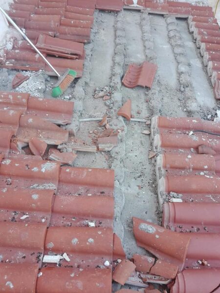 Διαπιστώθηκαν φθορές και ζημιές, που θα δημιουργούσαν μεγαλύτερα προβλήματα, και γι’ αυτό συνεργείο ανέλαβε την αποκατάσταση των σπασμένων κεραμιδιών και την αντικατάστασή τους.