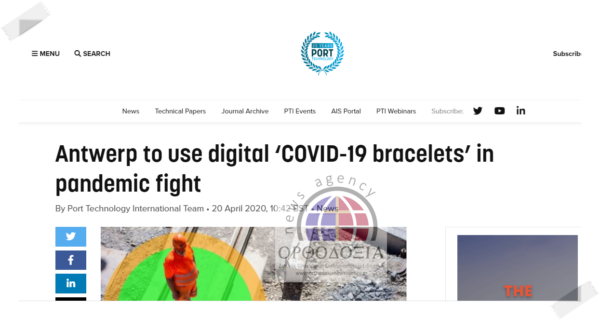 Ήδη, το λιμάνι της Αμβέρσας φαίνεται αποφασισμένο να χρησιμοποιήσει ψηφιακά βραχιόλια, τα οποία θα φοριούνται καθημερινά από τους εργαζομένους, σε μία προσπάθεια να αποσοβηθεί η διάδοση του κοροναϊού κατά τις επιχειρήσεις logistics και όλες τις υπόλοιπες επιχειρήσεις της βαριάς βιομηχανίας εντός του λιμανιού. Το νέο «βραχιόλι Covid» στοχεύει στην ενίσχυση του στόχου για “social distancing”, της κοινωνικής και αναγκαστικής απόστασης κατά την απασχόληση, αφού κάθε φορά που οι εργαζόμενοι θα έρχονται πολύ κοντά ο ένας στον άλλο, πρόκειται λαμβάνουν ένα προειδοποιητικό σήμα, το οποίο θα ηχεί απο τον καρπό του χεριού τους.