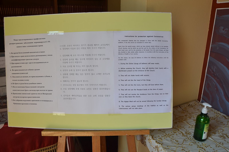 Σε συνεργασία με τις αρχές οι ναοί απολυμαίνονται συχνά. Οι φωτογραφίες είναι από την πρόσφατη απολύμανση στους χώρους του καθεδρικού ναού του Αγίου Νικολάου στη Σεούλ.