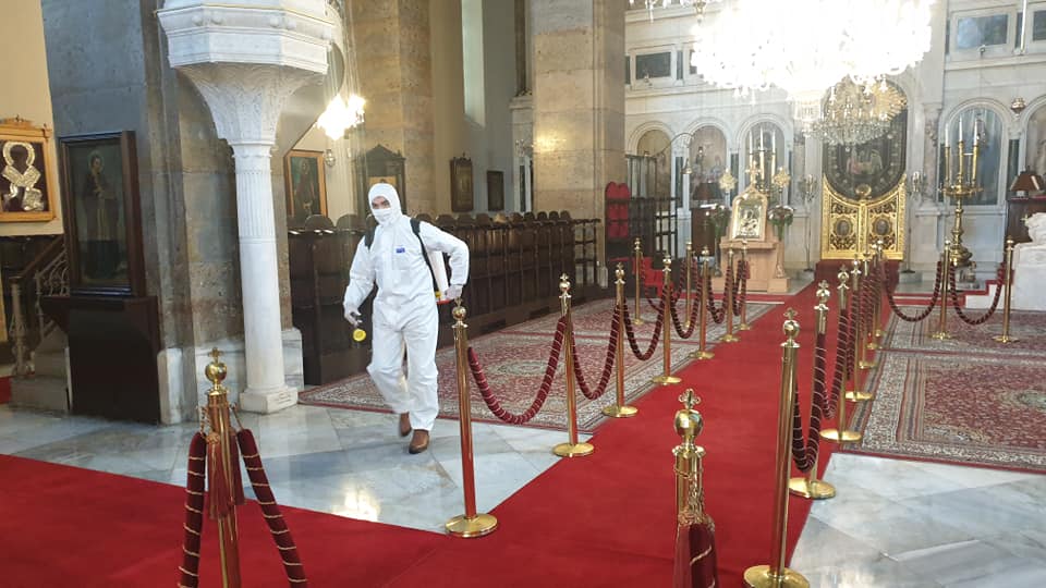 Ένα ακόμα μέτρο για τη δημόσια υγεία είναι η απολύμανση των ναών όπως στην Κωνσταντινούπολη.