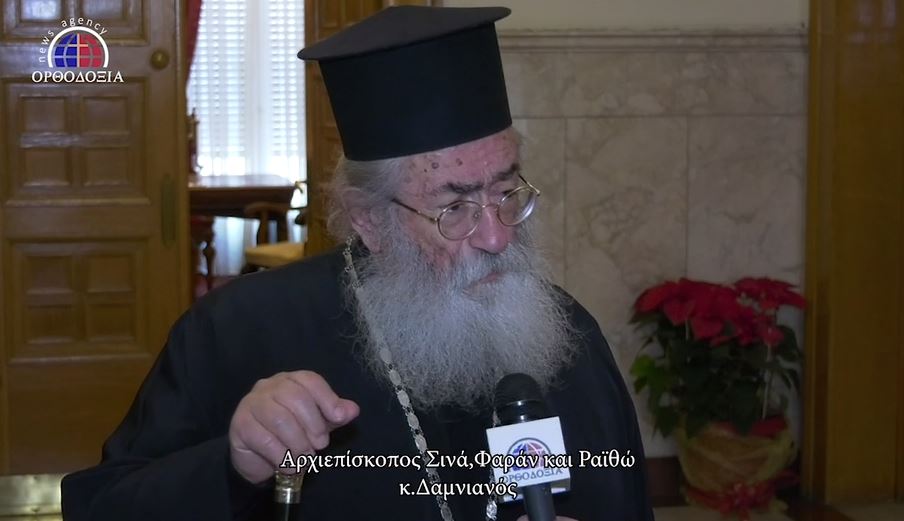Μετά την ολοκλήρωση της συνάντησης ο Σεβ. Αρχιεπίσκοπος Σινά κ. Δαμιανός μίλησε στην κάμερα του Πρακτορίου ΟΡΘΟΔΟΞΙΑ και στον δημοσιογράφο Δημήτρη Στρουμπάκο, σχετικά με την κατάσταση που επικρατεί στην Αίγυπτο.