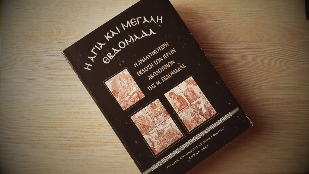 Την επιμέλεια της έκδοσης έχει ο Αρχιμανδρίτης Απόστολος Φορλίδας και περιλαμβάνει την Ιερές Ακολουθίες της Μεγάλης Εβδομάδας χωρίς συντομεύσεις, περικοπές και παραπομπές.