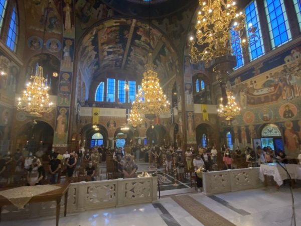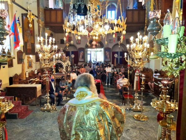 Η Θεία Λειτουργία τελέστηκε σε απολύτως κλειστό κύκλο και με τα ισχύοντα προβλεπόμενα μέτρα για την προστασία της δημόσιας υγείας, ενώ για τους ίδιους λόγους δεν πραγματοποιήθηκε η καθιερωμένη δεξίωση, που γινόταν κατ’ έτος από το Εκκλ. Συμβούλιο του Ναού προς τιμήν των μαθητών και εκπαιδευτικών.