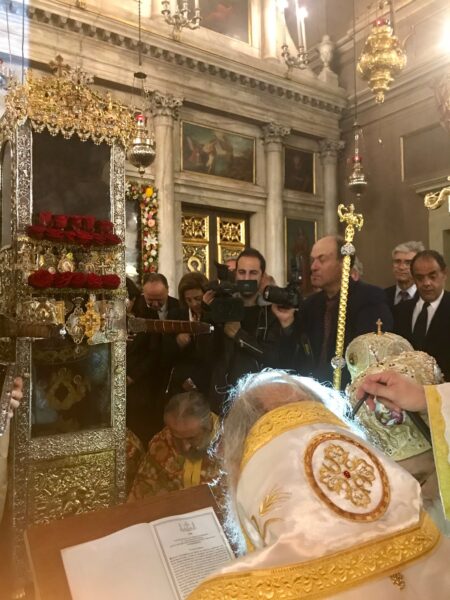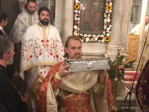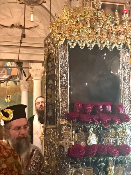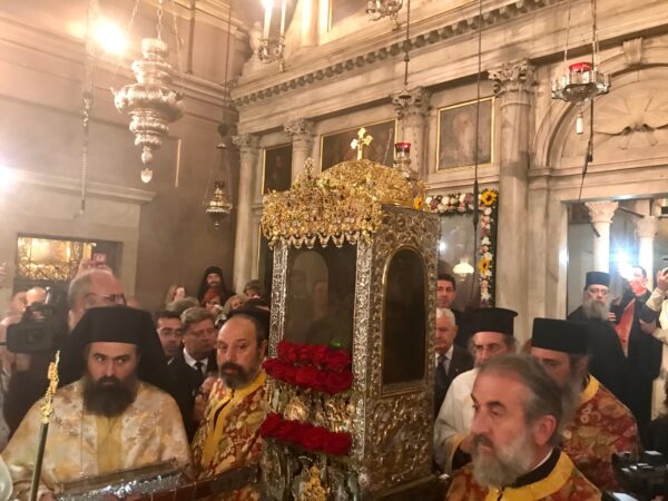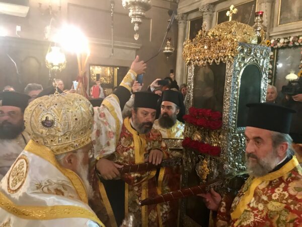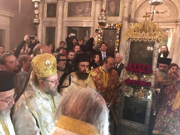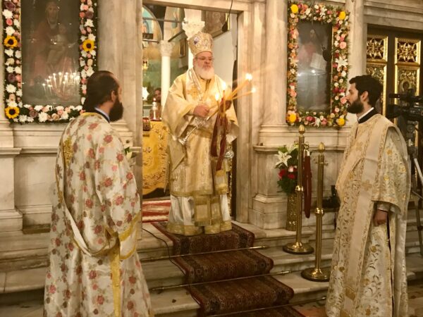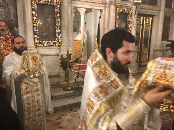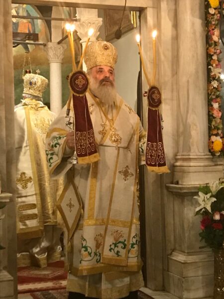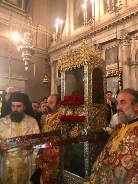Στο ασφυκτικά γεμάτο από πιστούς ιερό προσκύνημα, παρουσία και των αρχών του τόπου, τελέστηκε το πρωι της Κυριακής 3 Νοεμβρίου 2019, Αρχιερατικό Συλλείτουργο, ιερουργούντων των Σεβασμιωτάτων Μητροπολιτών Βρεσθένης κ. Θεοκλήτου, ο οποίος και προεξήρχε, Ρούσσε (εκ της Εκκλησίας της Βουλγαρίας) κ. Ναούμ, Βελγίου και Ολλανδίας κ. Δοσίθεος (εκ της Εκκλησίας της Γεωργίας) και ο επιχώριος Μητροπολίτης Κερκύρας, Παξών και Διαποντίων Νήσων κ. Νεκτάριος.