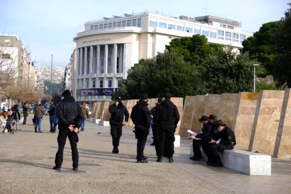 ΘΕΣΣΑΛΟΝΙΚΗ – Aπό νωρίς το πρωί της 6ης Ιανουαρίου, η Αστυνομία περιφρουρούσε όλες τις εισόδους στους ιερούς ναούς για αποφυγή συνωστισμού και για την επίβλεψη των υγειονομικών μέτρων.