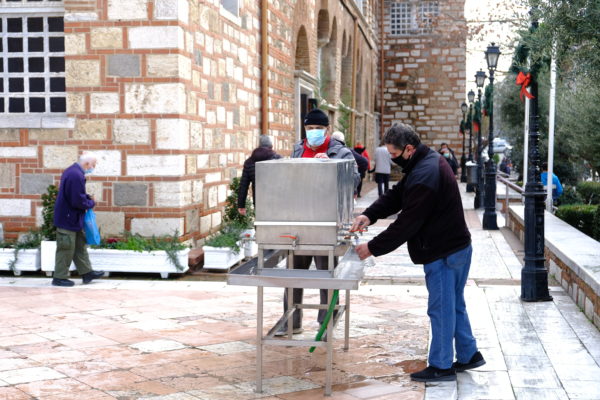 Ένας από τους ιερείς του ιερού ναού Αγίου Φωτίου του Μεγάλου, ευλόγησε μόνος του τα ύδατα παραπλεύρως του ιερού ναού τηρώντας τα μέτρα ασφαλείας.