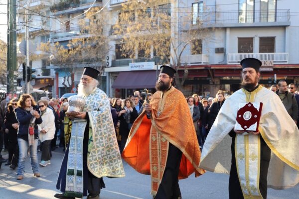 Πλήθος κόσμου από την ευρύτερη περιοχή προσήλθε για να συμμετάσχει στη λιτανεία της Τίμιας Κάρας και της εικόνας του αγίου που πραγματοποιήθηκε στους δρόμους της ενορίας. Στη σύντομη ομιλία του, στο τέλος της λιτανείας, ο προϊστάμενος του ναού Αρχιμανδρίτης Σεβαστιανός Σαμαράκης επικαλέστηκε τη χάρη του αγίου Νικολάου Πλανά ευχόμενος σε όλους καλή Σαρακοστή. Μετά το τέλος της λιτανείας, ξεκίνησε στον ναό η τέλεση του κατανυκτικού εσπερινού.