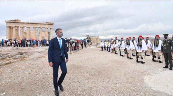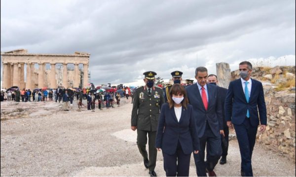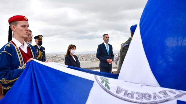 Η Πρόεδρος της Δημοκρατίας Κατερίνα Σακελλαροπούλου παρέστη σήμερα, Τρίτη 12 Οκτωβρίου 2021, το πρωί στην έπαρση της σημαίας στον Ιερό Βράχο της Ακρόπολης και στη συνέχεια κατέθεσε στεφάνι στο Μνημείο του Αγνώστου Στρατιώτη, στο πλαίσιο του εορτασμού της 77ης επετείου της Απελευθέρωσης της Αθήνας από τα στρατεύματα κατοχής.