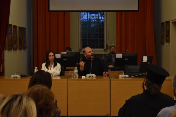 Στη συνέχεια η Αντιδήμαρχος Πολιτισμού κ.Μαρία Παπαγεωργίου αφού καλωσόρισε τον π. Χαράλαμπο Λίβυο στην πόλη μας, τον επαίνεσε για το συγγραφικό του έργο, και μεταξύ άλλων τόνισε ότι, ο πατέρας Λίβυος εκφράζει και διδάσκει με κάθε τρόπο την αυθεντικότητα, την αλήθεια, την αγάπη, παντρεύοντας το ρεαλισμό του με τη βαθιά του αίσθηση πνευματικότητας. Τέλος τόνισε ότι, είμαστε πολύ τυχεροί που μπορούμε να παρακολουθούμε τα πολύτιμα μαθήματά του και τα μυνήματά του μέσα από τα βιβλία του.
