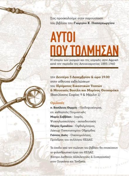 “Αυτοί που τόλμησαν”. Αυτός είναι ο τίτλος του βιβλίου του ιατρού Γιώργου Κ. Παπαγεωργίου το οποίο περιγράφει την ιστορία των γιατρών και της ιατρικής στην Αφρική κατά την περίοδο της Αποικιοκρατίας 1885 – 1960.