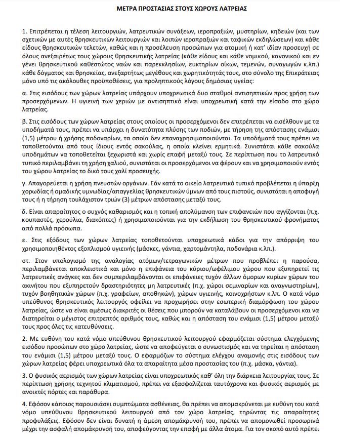 ΔΙΑΒΑΣΤΕ ΕΠΙΣΗΣ ΤΟ ΣΧΕΤΙΚΟ ΠΑΡΑΡΤΗΜΑ ΓΙΑ ΤΑ ΜΕΤΡΑ ΠΟΥ ΙΣΧΥΟΥΝ ΣΤΙΣ ΕΚΚΛΗΣΙΕΣ