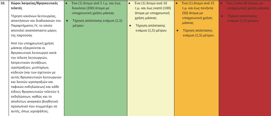 Επιδημιολογικό Επίπεδο 4 (πολύ υψηλό): Συνολικό 9 πιστοί εντός των ναών με ελάχιστη απόσταση 1,5 μ. μεταξύ τους.