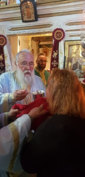 Προσφωνώντας την αδελφότητα και τους πιστούς ο κ. Νεκτάριος τόνισε ότι η Παναγία μας προτρέπει να μην καμπτόμαστε από τις δυσκολίες τις οποίες βιώνουμε στους καιρούς μας, διότι η ίδια μεσιτεύει για μας.