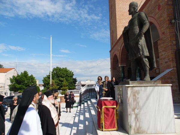 Στη συνέχεια εψάλη Τρισάγιο μπροστά στον ανδριάντα του Κωνσταντίνου Παλαιολόγου, τον οποίο έχει φιλοτεχνηθεί με μέριμνα του μακαριστού Μητροπολίτη Διδυμοτείχου κύρου Νικηφόρου και στήθηκε μπροστά στον Ιερό Καθεδρικό ΝΑό ώστε να θυμίζει τους πνευματικούς δεσμούς της Κωνσταντινούπολης με το Διδυμότειχο.