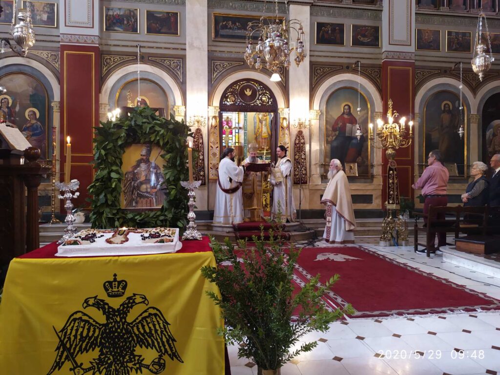 Στον Ιερό Μητροπολιτικό Ναό Ευαγγελιστρίας Πατρών ετελέσθη το πρωί της 29ης Μαίου 2020 Θεία Λειτουργία, υπό του Σεβασμιωτάτου Μητροπολίτου Πατρών κ. Χρυσοστόμου και ιερό μνημόσυνο υπέρ των αοιδίμων προμάχων και υπερασπιστών της Βασιλίδος των πόλεων Κωνσταντίνου του Παλαιολόγου και των συμπολεμιστών αυτού, ως και πάντων των φρικτώ τρόπω τελειωθέντων, αμάχων πατέρων και αδελφών ημών κατά την αποφράφα εκείνη ημέρα.