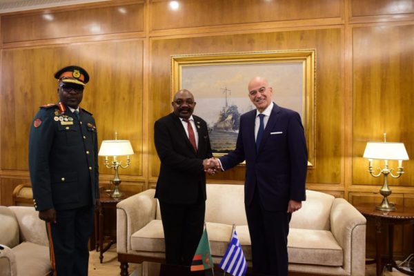 Είναι μεγάλη μου χαρά που σας υποδέχομαι στην Αθήνα. Μιας ιστορικής πρώτης επίσκεψης Υπουργού Άμυνας από τη Ζάμπια στην Ελλάδα, και μάλιστα μιας επίσκεψης που συνοδεύτηκε από την υπογραφή και ενός Μνημονίου Κατανόησης.