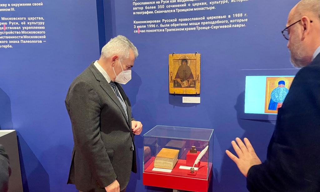 «Είναι πραγματικά εντυπωσιακή η διαχρονική παρουσία του ελληνισμού στην Μόσχα, και γενικά στην Ρωσία, καθώς έχει διακριθεί σε όλους τους τομείς του πολιτισμού, της γνώσης και της οικονομίας. Αυτή η πλούσια παράδοση συνεχίζεται μέχρι σήμερα από την ελληνική ομογένεια, και σίγουρα μπορεί να έχει σπουδαίο μέλλον, βοηθούμενη και από την παράλληλη ανάπτυξη των ελληνο-ρωσικών σχέσεων». Τα παραπάνω δήλωσε ο Γενικός Γραμματέας της Διακοινοβουλευτικής Συνέλευσης Ορθοδοξίας (ΔΣΟ), Μέλος της Βουλής των Ελλήνων, κ. Μάξιμος Χαρακόπουλος μετά την ξενάγηση που έτυχε από τον μορφωτικό ακόλουθο της Ελληνικής Πρεσβείας στην Μόσχα, κ. Δημήτρη Γιαλαμά, στην Έκθεση «Ελληνική Μόσχα – από τον Θεοφάνη τον Έλληνα μέχρι σήμερα».