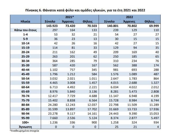 Δείτε αναλυτικά τους Πίνακες της ΕΛΣΤΑΤ με τη Φυσική Κίνηση Πληθυσμού ( 2022 )