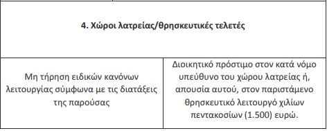 Επιπλέον σημειώνεται ότι η Μη τήρηση ειδικών κανόνων λειτουργίας θα επιφέρει πρόστιμο στον θρησκευτικό λειτουργό χιλίων πεντακοσίων (1.500) ευρώ: