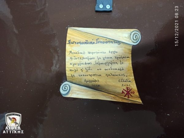 “Θα θέλαμε να ευχαριστήσουμε θερμά την αγιογράφο που επιθυμεί να κρατήσει την ανωνυμία της για την περίτεχνη αυτή δημιουργία. Ευχαριστούμε επίσης τον Υπουργό Εθνικής Άμυνας, το Γενικό Επιτελείο Στρατού και την Σχολή Διαβιβάσεων για την αποδοχή της δωρεάς αλλά και την έμπρακτη στήριξή τους στη Λέσχη μας όλα αυτά τα χρόνια”, καταλήγει η ανακοίνωση της Λέσχης Εφέδρων Αττικής.