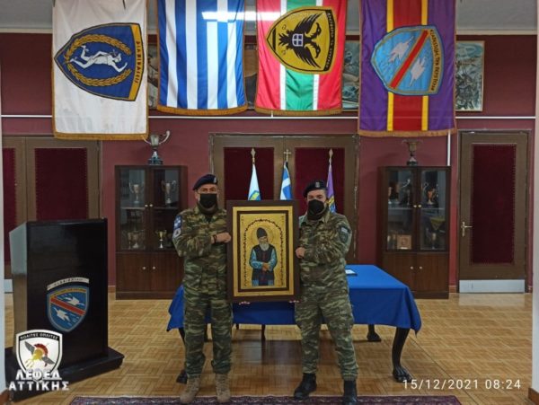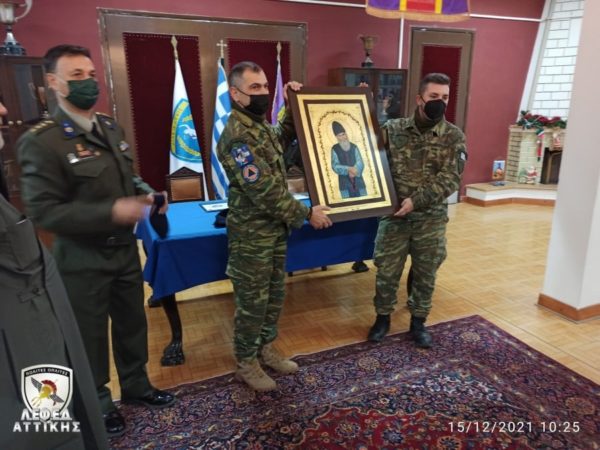 Μία χειροποίητη εικόνα του Αγίου Παϊσίου προσφέρθηκε ως δώρο από τη Λέσχη Εφέδρων Ενόπλων Δυνάμεων Αττικής στη Σχολή Διαβιβάσεων στο Χαϊδάρι.