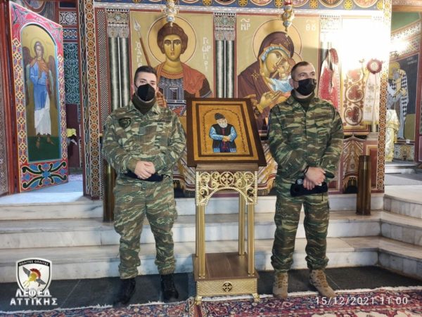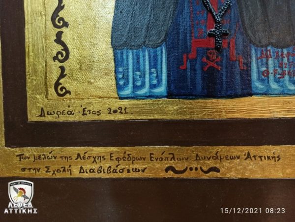Μία χειροποίητη εικόνα του Αγίου Παϊσίου προσφέρθηκε ως δώρο από τη Λέσχη Εφέδρων Ενόπλων Δυνάμεων Αττικής στη Σχολή Διαβιβάσεων στο Χαϊδάρι.