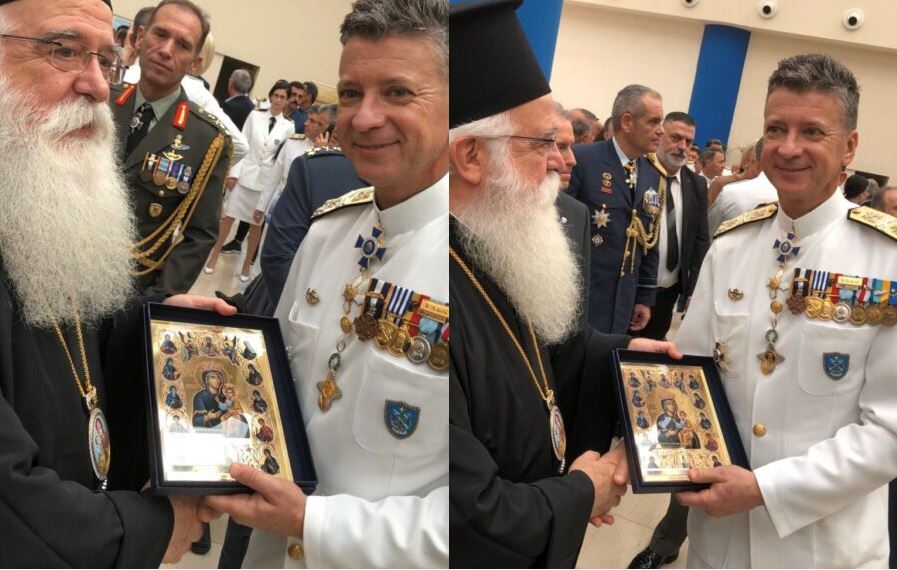 Ο Σεβασμιώτατος παρέδωσε στον νέο Αρχηγό, ως ευλογία, την ιερά Εικόνα της Παναγίας Ξενιάς και των Τοπικών Αγίων της Δημητριάδος.
