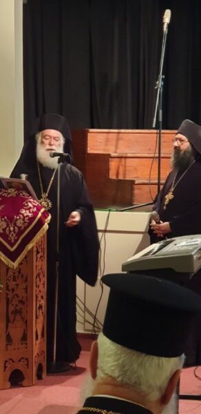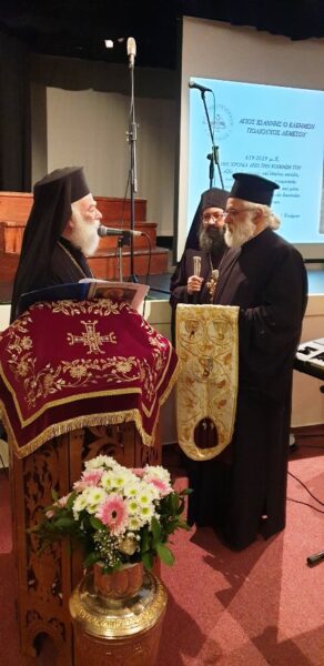 Μετά την εισαγωγή ο Αρχιμ. Ισαάκ κάλεσε τον Μακαριώτατο Πατριάρχη Αλεξανδρείας στο βήμα για τη δική του σύντομη ομιλία, στην οποία αναφέρθηκε στο έργο που πραγματοποιείται στο χώρο της Ορθόδοξης Ιεραποστολής στην Αφρική, για τις δυσκολίες, τις θυσίες και τους κόπους τους οποίους καταβάλει τόσο αυτός όσο και οι συνεργάτες του για να διαδοθεί ο λόγος του Θεού στο χώρο της ιεραποστολής.