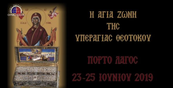 07/06/2019 17/06/2019 Εξέρχεται του Περιβολίου της Παναγίας, η Τιμία Ζώνη της Υπεραγίας Θεοτόκου, η οποία, συνοδεία του Καθηγουμένου της Ιεράς Μεγίστης Μονής Βατοπαιδίου Αρχιμ. π. Εφραίμ και πατέρων της Ιεράς Μονής, θα τέθει διαδοχικά σε προσκύνηση σε Δράμα, Πόρτο Λάγος και Κόρινθο. ΔΡΑΜΑ: 20-23 ΙΟΥΝΙΟΥ 2019 ΠΟΡΤΟ ΛΑΓΟΣ: 23-25 ΙΟΥΝΙΟΥ 2019 ΚΟΡΙΝΘΟΣ: 25-30 ΙΟΥΝΙΟΥ 2019 Παρακολουθήστε το...