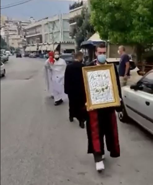 Λιτάνευση της εικόνας της Μεταμορφώσεως του Σωτήρος, με αίτημα την κατάπαυση της φωτιάς, έκαναν λίγο πριν τη Θεία Κοινωνία και το «Μετά Φόβου» οι ιερείς της Αγίας Μαρίνας Ηλιουπόλεως. «Σε άλλες εποχές όλοι θα ήμασταν στους δρόμους με λιτανείες να σταματήσουμε το κακό. Με αίτημα την κατάπαυση του πυρός σε μέρη ευλογημένα, λίγο πριν το «Μετά φόβου…» ο ίδιος ο Κύριος ημών Ιησούς Χριστός, η εικόνα της Μεταμορφώσεως Του και τα λείψανα των αγίων λιτανεύθηκαν πέριξ του ναού και ευλογήθηκαν τα τέσσερα σημεία του ορίζοντος, με τον κλήρο και τον λαό του Θεού εντός του ναού να ψάλει το «Κύριε ελέησον».