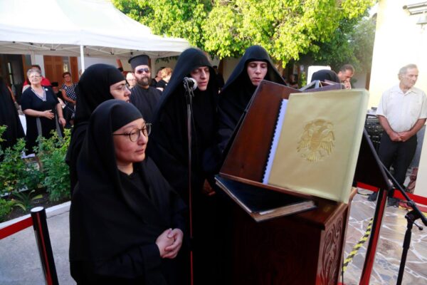 «Εὐχόμαστε ἡ Χάρις τῆς Παναγίας τῆς Παραμυθίας νὰ σᾶς ἐνισχύει πάντοτε στὸν πνευματικό σας ἀγώνα καὶ στὴν καθημερινή σας ζωή, ποὺ εἴθε νὰ εἶναι πνευματικὰ εὔκαρπη καὶ καλλίκαρπη καὶ παναγιοσκέπαστη», ανέφερε, μεταξύ άλλων, ο π. Μάξιμος Βατοπαιδινός (φώτο, ως ακολουθεί), ο οποίος εκπροσώπησε τον Καθηγούμενο της Ιεράς Μεγίστης Μονής Βατοπαιδίου, Γέροντα Εφραίμ.