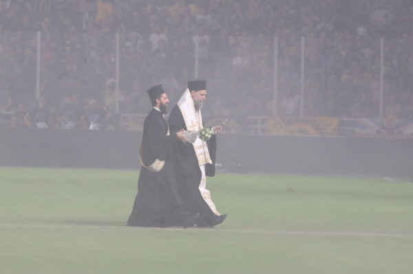 Οι θύρες της OPAP Arena άνοιξαν ακριβώς στις 17:00.Την ίδια στιγμή περιμετρικά του γηπέδου άνθρωποι κάθε ηλικίας συγκινημένοι και χαρούμενοι προσέρχονταν στις πύλες του Ναού για να ζήσουν την επιστροφή της ΑΕΚ στη φυσική της έδρα! Λίγο μετά τις 20:00 ο Μητροπολίτης Νέας Ιωνίας Γαβριήλ τέλεσε τον αγιασμό και πέντε λεπτά μετά τις 20:30 τα φώτα έσβησαν για να ξεκινήσει η λαμπρή τελετή, με τα κινητά των οπαδών της ΑΕΚ στις εξέδρες να δημιουργούν μια μοναδική ατμόσφαιρα! Μάλιστα ο Δημήτρης Μελισσανίδης «λύγισε» από συγκίνηση όταν αναφέρθηκε ο Μητροπολίτης σε αυτόν στον λόγο του.