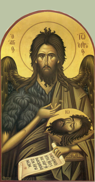 Τέτοιο ήταν και το άγιο αίμα του Προδρόμου και Βαπτιστή του Χριστού, για το οποίο μιλάμε σήμερα και το οποίο έχυσε από τον ιερό του τράχηλο σαν πολύτιμο μύρο που ευωδιάζει την οικουμένη. Το αίμα αυτό δεν το έφτιαξε η ηδονική πολυφαγία, ούτε το κρασί, ούτε κάποια από τις άλλες τροφές που συνήθως παχαίνουν και ευχαριστούν τους λαίμαργους.
